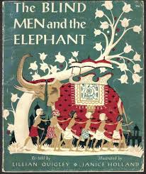 Let your children act out the story. In the blind men and the elephant by american poet john godfrey saxe 1816 1887 six blind men meet an elephant for the first time and each man touches a different part of the elephant and makes predictions about what the elephant is like.